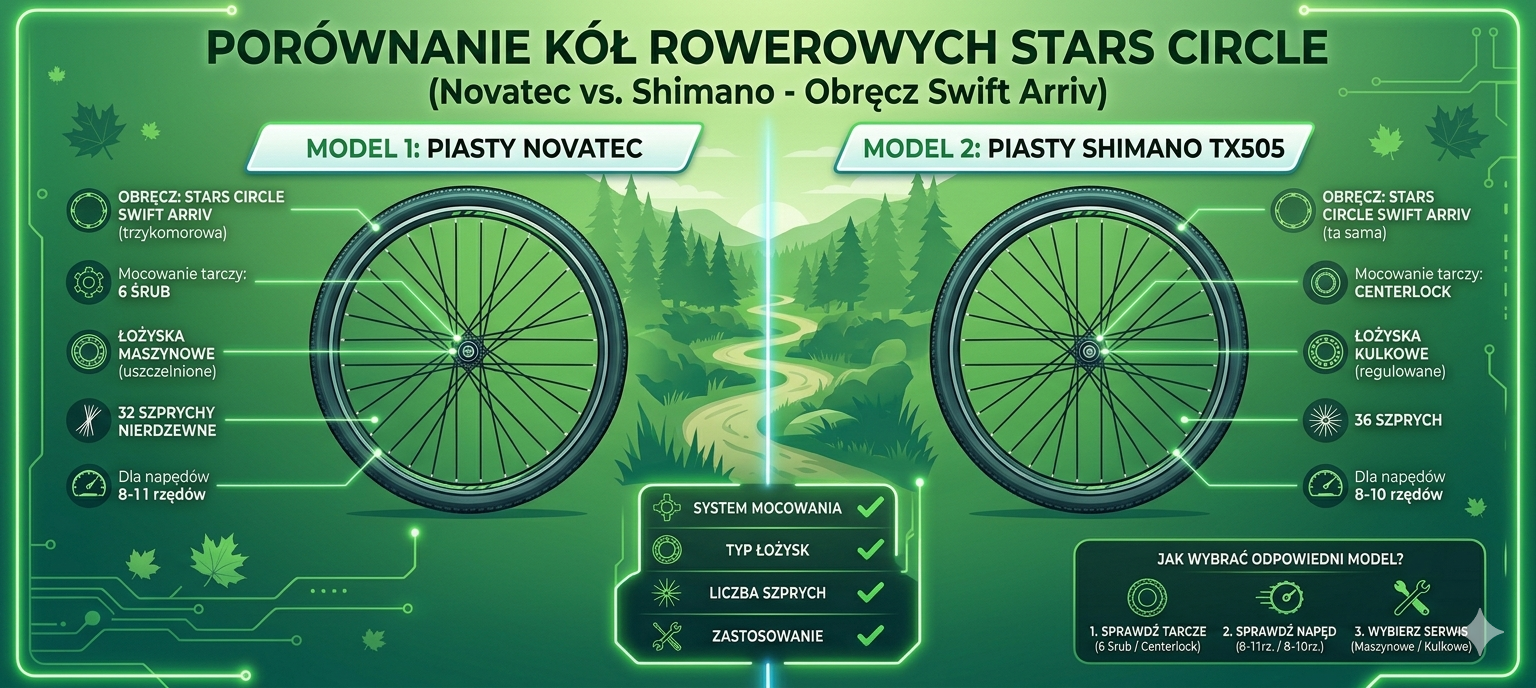 W tym miejscu porównujemy dwa modele oparte na piastach Novatec i Shimano: PORÓWNANIE KÓŁ STARS CIRCLE (NOVATEC vs SHIMANO)