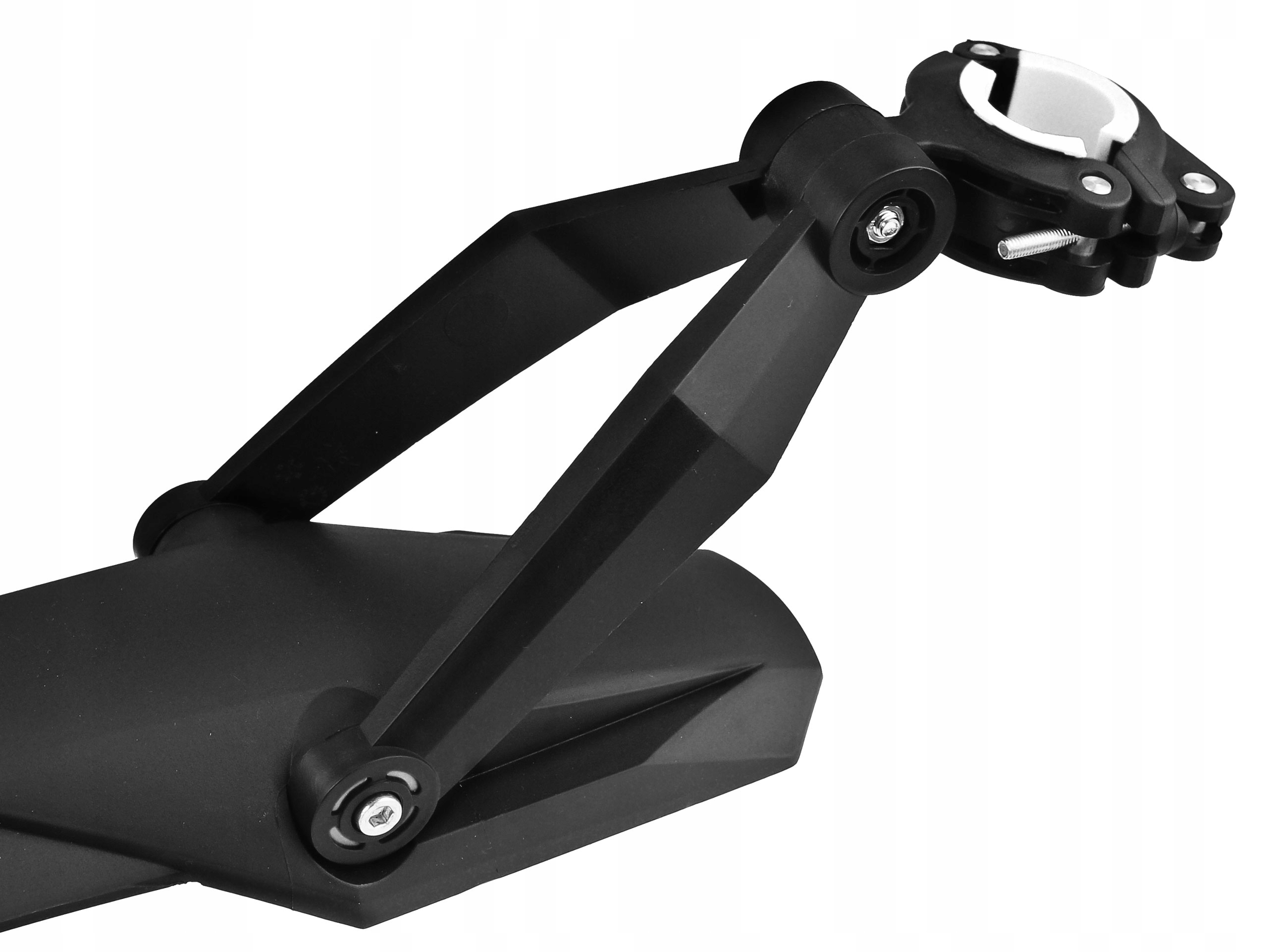 Sprawdzona widełkowa konstrukcja i wykorzystanie podwójnego przegubu umożliwia idealne dopasowanie błotnika do ergonomii ramy i koła. Szeroka płetwa wykonana z tworzywa high impact zapewnia maksimum ochrony podczas jazdy w każdym terenie.