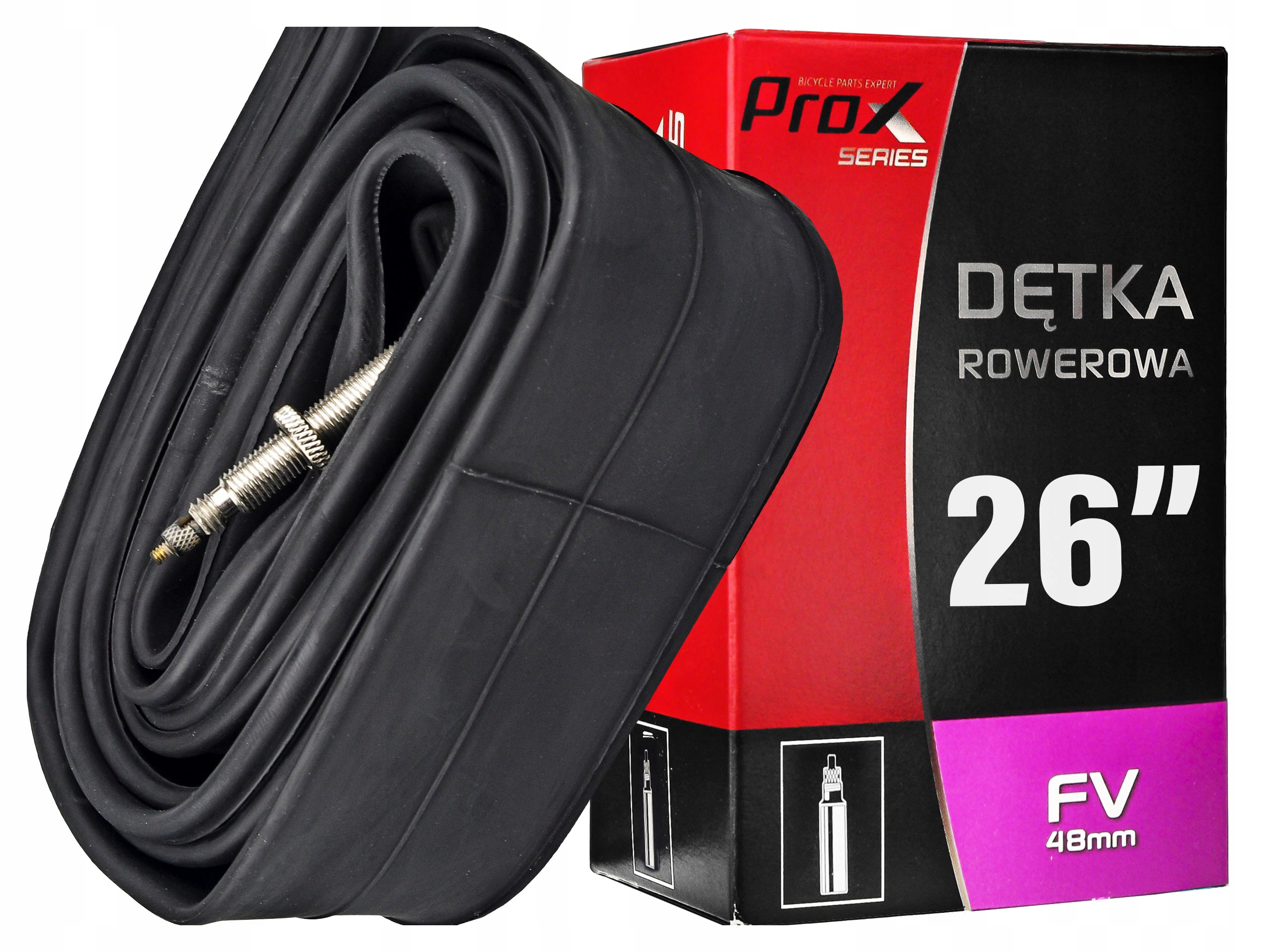 Dętka rowerowa z oferty marki PROX, wykonana z gumy butylowej najwyższej jakości.