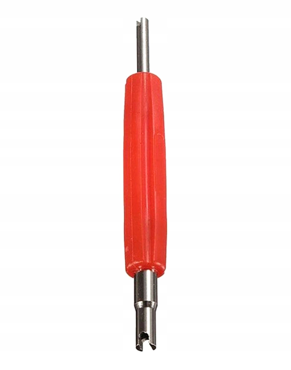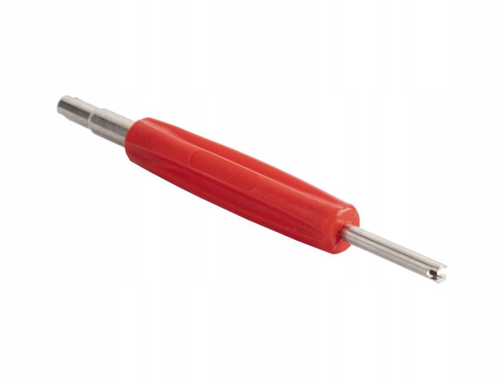 Dwustronny wkrętak do zaworów dętkowych i bezdętkowych. Sprawdzi się również przy wkręcaniu i wykręcaniu wkładek typu EM oraz zaworów klimatyzacji. Wygodna rękojeść pokryta tworzywem sztucznym ułatwiającym użytkowanie.