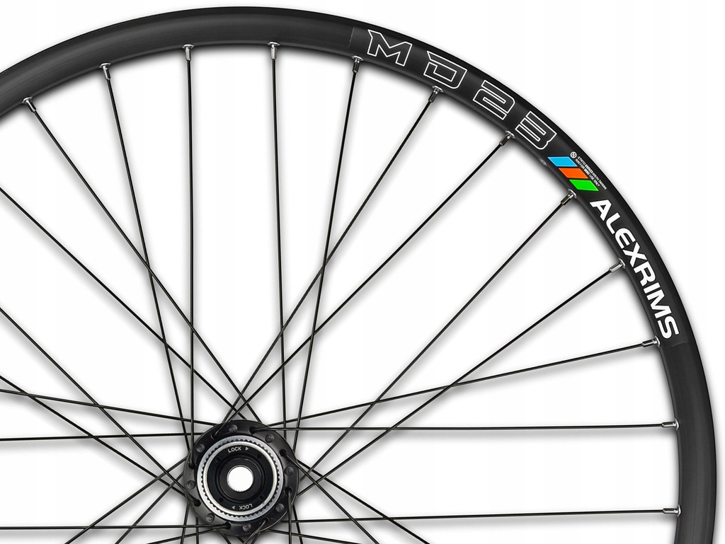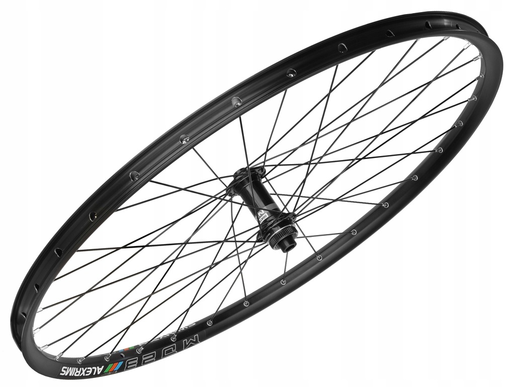 Przednie koło rowerowe o rozmiarze 29'', zbudowane na wyjątkowo wytrzymałej, trzykomorowej, aluminiowej obręczy ALEXRIMS MD23.