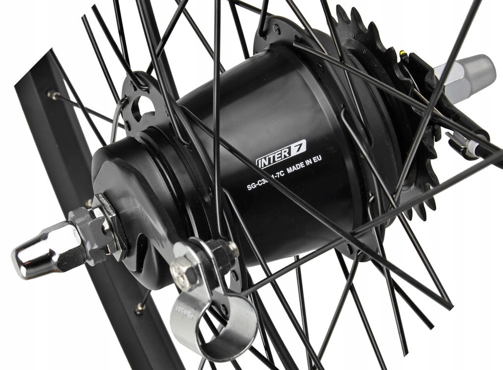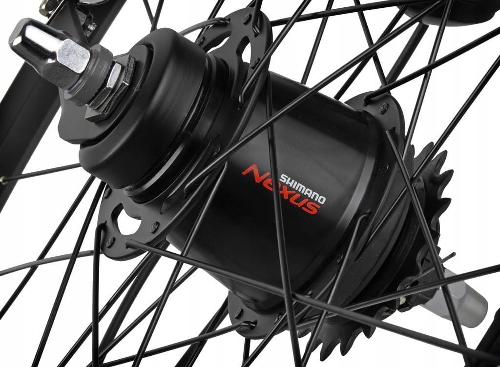 Wyposażone w kompletną, 7-biegową piastę Shimano Nexus Inter SG-C3001-7C - ze względu na wygodę użytkowania, trwałość i prostotę obsługi to rozwiązanie cieszy się dużą popularnością w rowerach miejskich i trekkingowych.