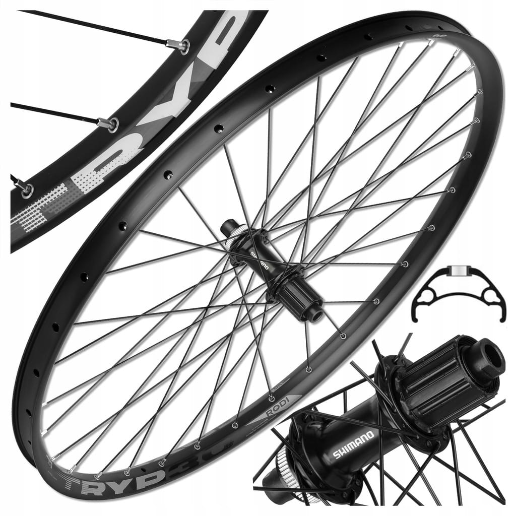 Tylne koło rowerowe o rozmiarze 29'', zbudowane na wyjątkowo wytrzymałej, trzykomorowej, aluminiowej obręczy RODI TRYP 25 EVO.