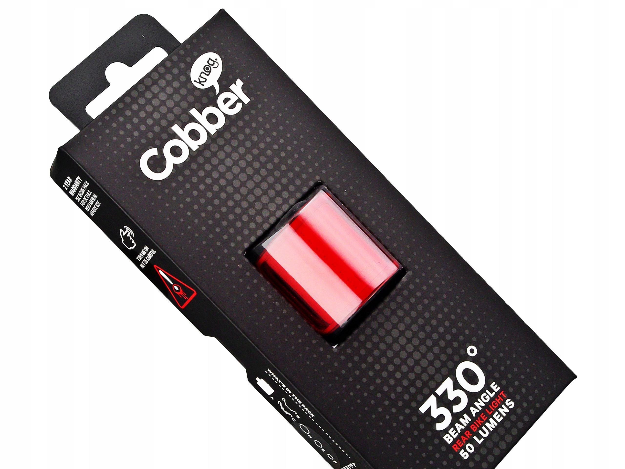 KNOG COBBER (12187) zapewnia niewiarygodny zakres 330 stopni światła, dzięki czemu będziesz wyraźnie widoczny ze wszystkich stron.