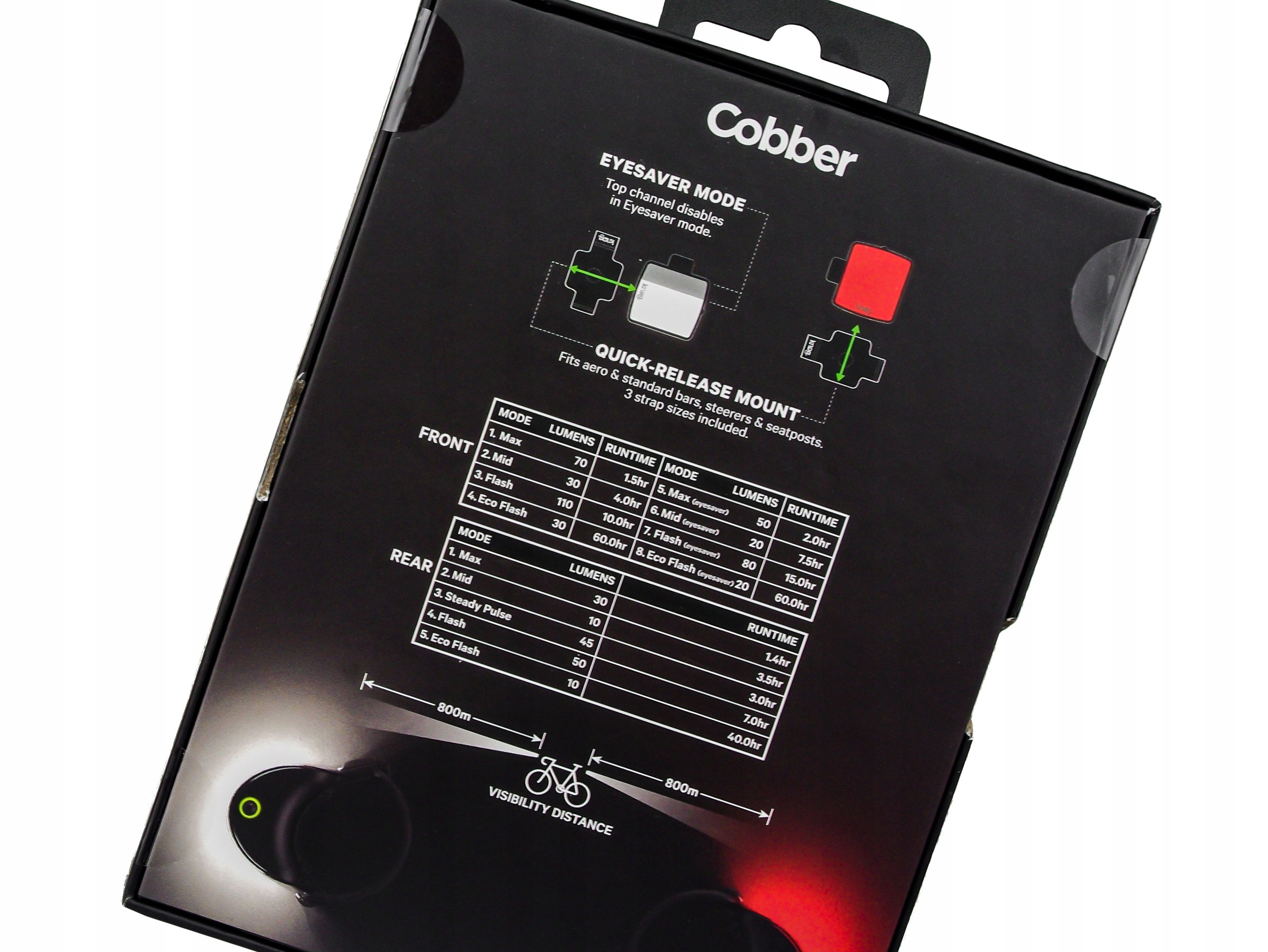 Moc maksymalna na poziome 170 lumenów czyni Cobbera jedną z jaśniejszych tylnych lamp na rynku.