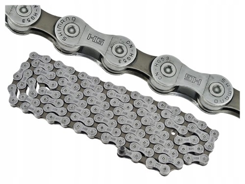 Uniwersalny łańcuch SHIMANO CN-HG53 o długości 114 ogniw dedykowany 9-rzędowym napędom. Wykonany w technologii HyperGlide. Spinany dołączonym do zestawu pinem.