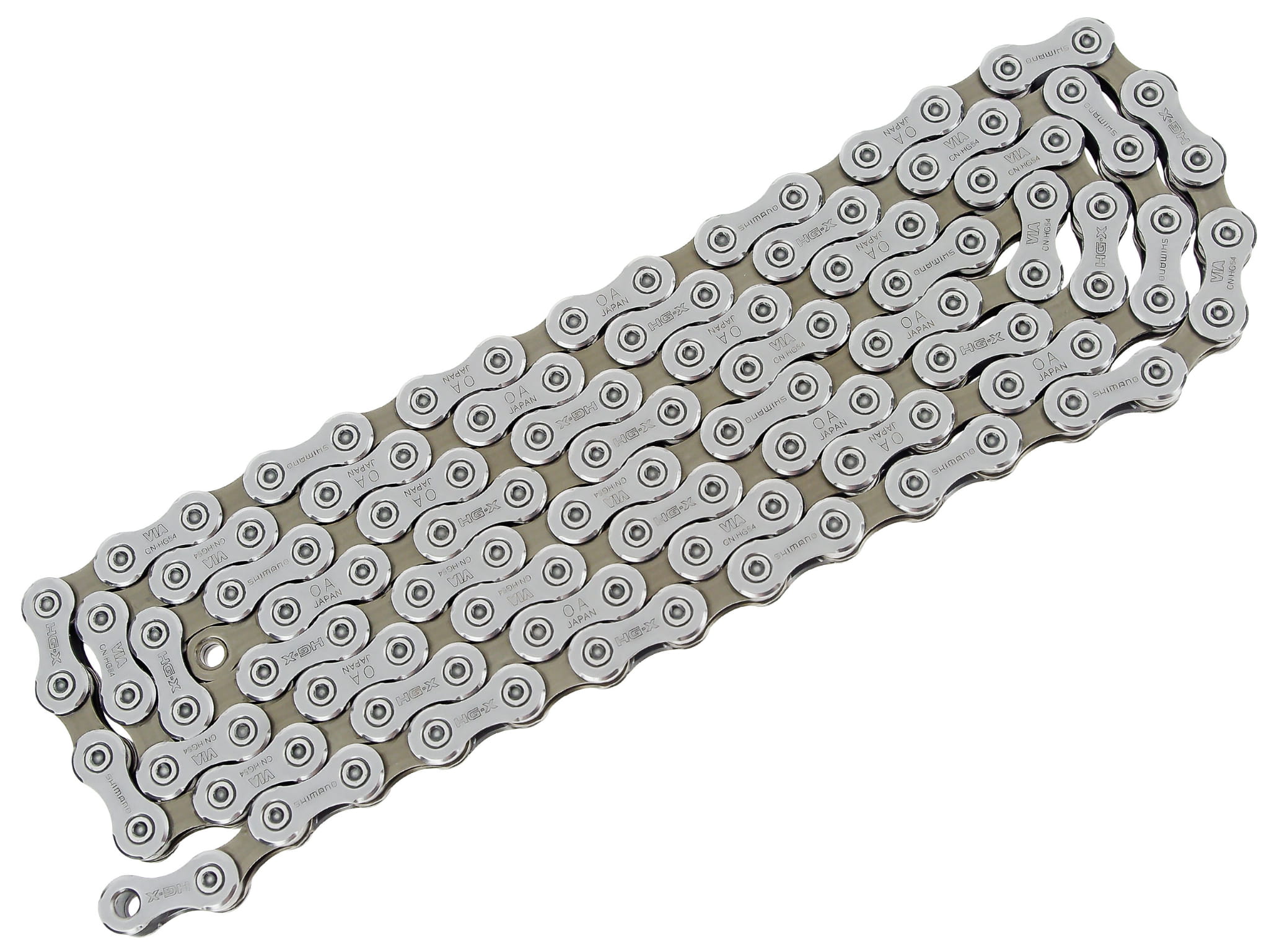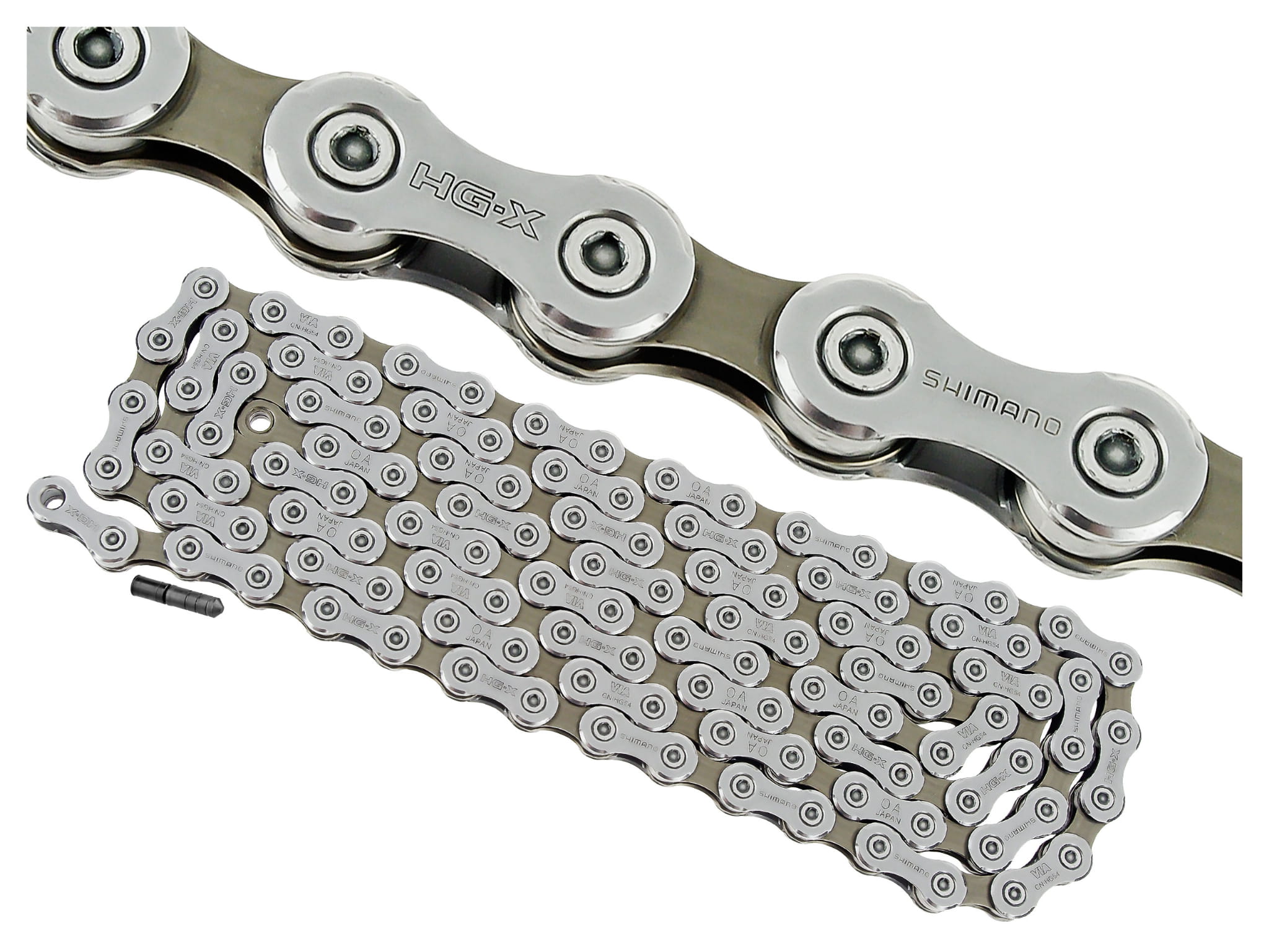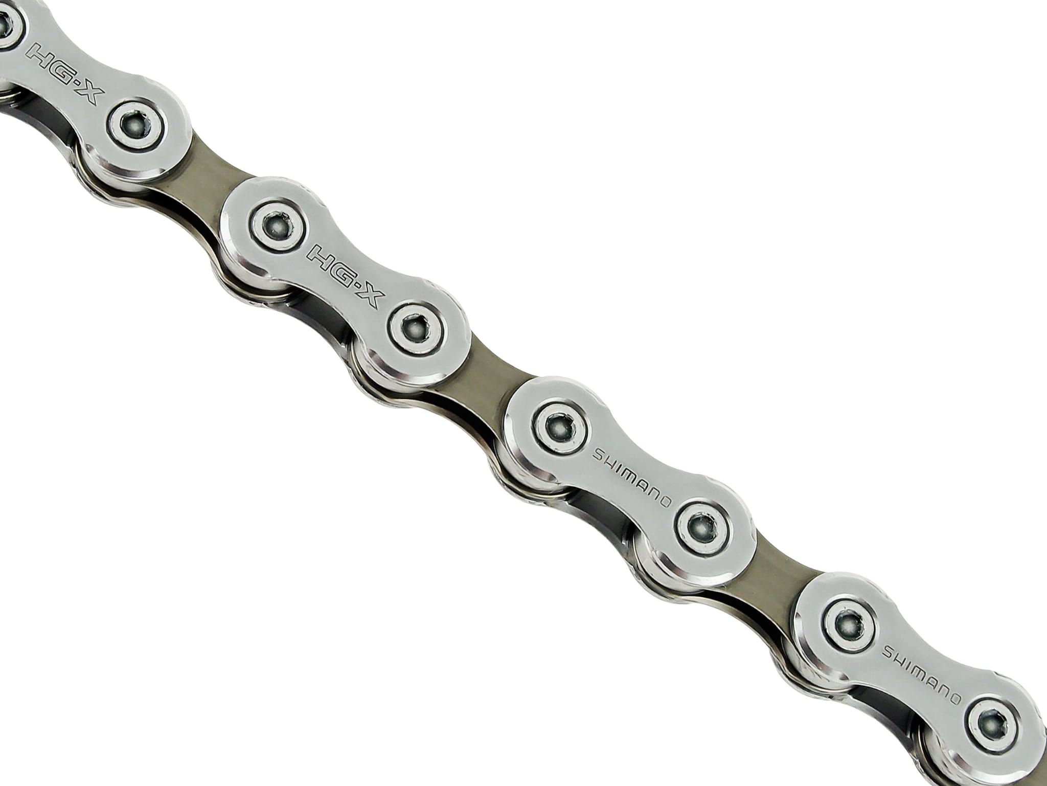Całkowicie nowy, 10-biegowy, kierunkowy łańcuch do rowerów górskich HG-X zapewnia bardziej płynną zmianę przełożeń, mniejszą wagę i lepsze ogólne parametry działania.