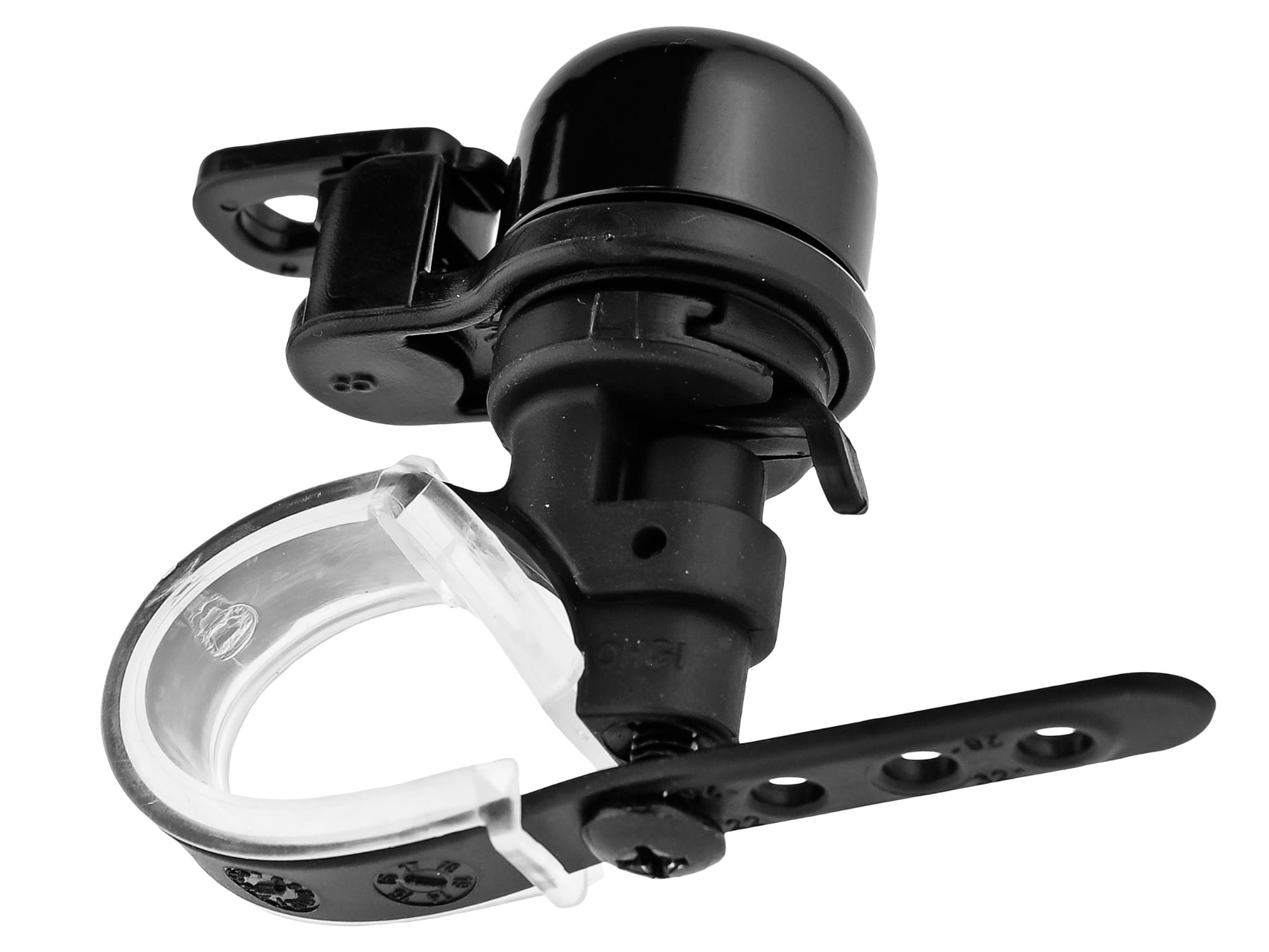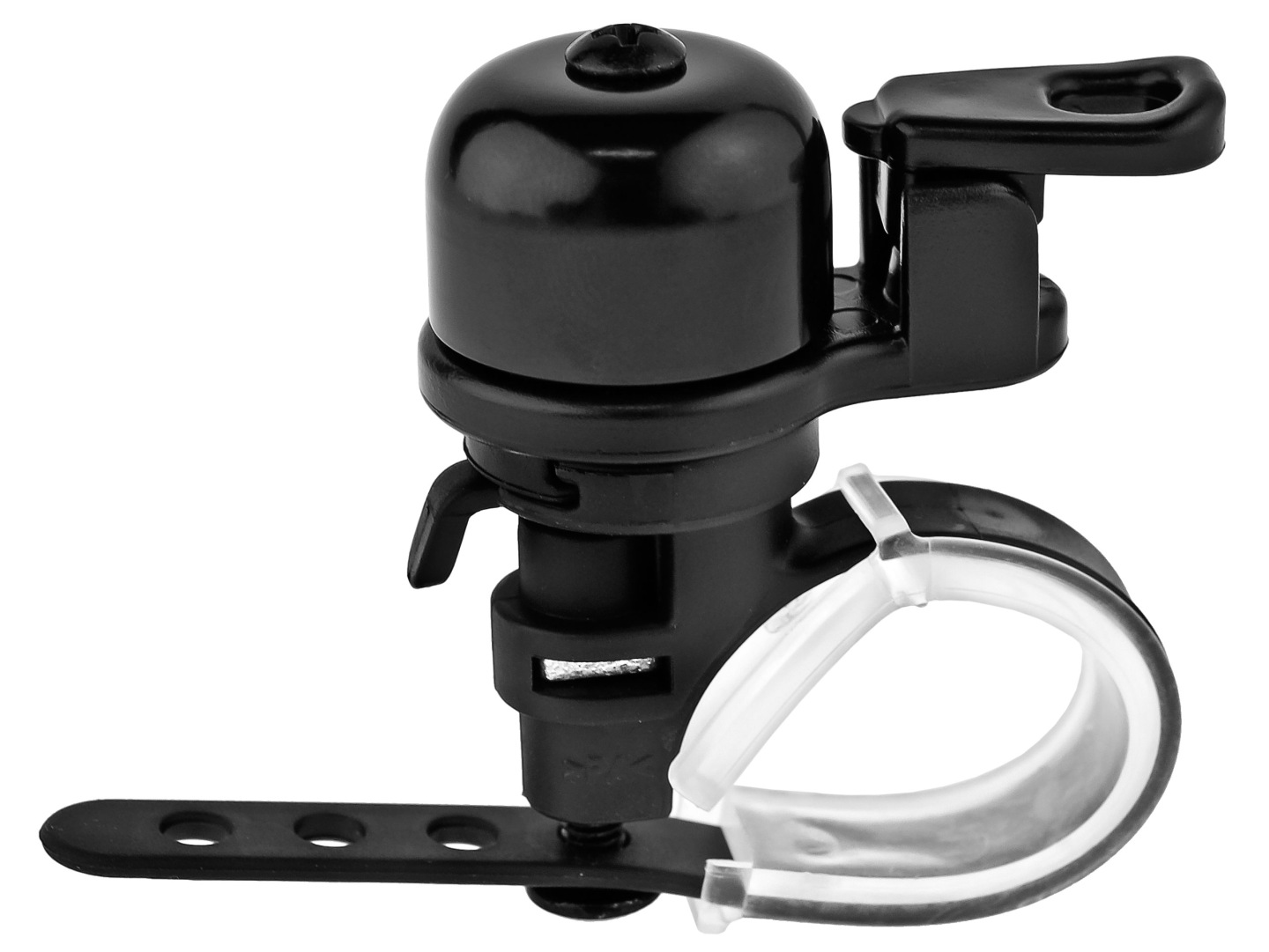 Podstawa i młoteczek wykonane z tworzywa sztucznego. Jego wysoki dźwięk skutecznie ostrzeże pieszych spacerujących po ścieżkach rowerowych.