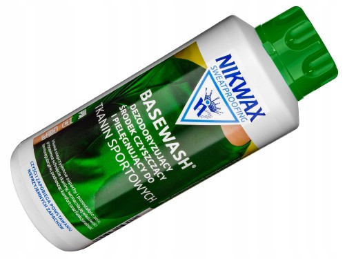 - Nikwax BaseWash® odświeża syntetyczną bieliznę termoaktywną, usuwając przykry zapach i zabezpieczając przed gromadzeniem się zapachów podczas używania.