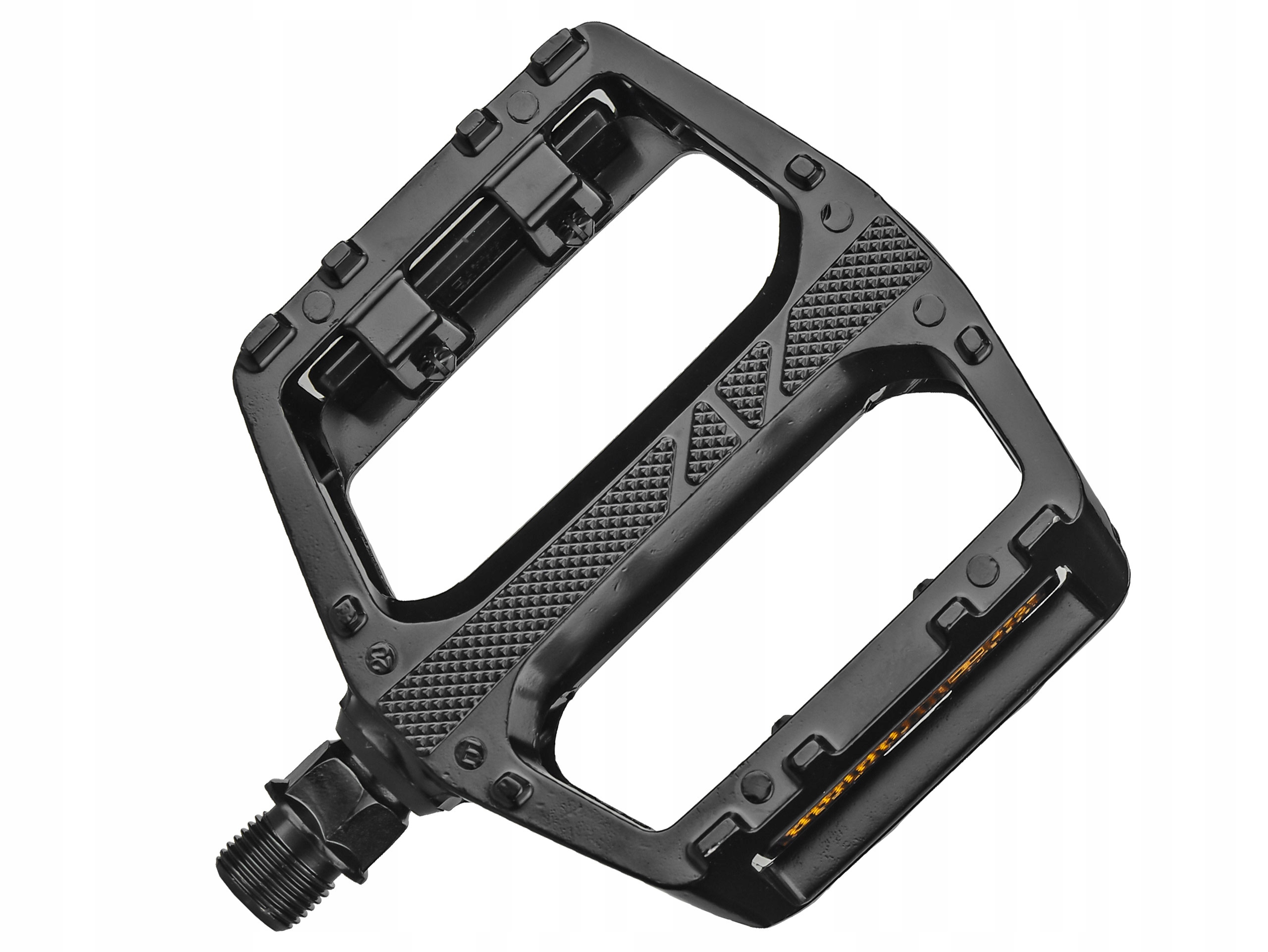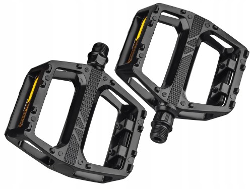Wytrzymały model pedałów platformowych. Korpus wykonany ze stopu aluminium, zintegrowane piny dobrze przylegają do każdego rodzaju podeszwy. Wyposażone w odblaski i uszczelnione łożyska polimerowe EPB.