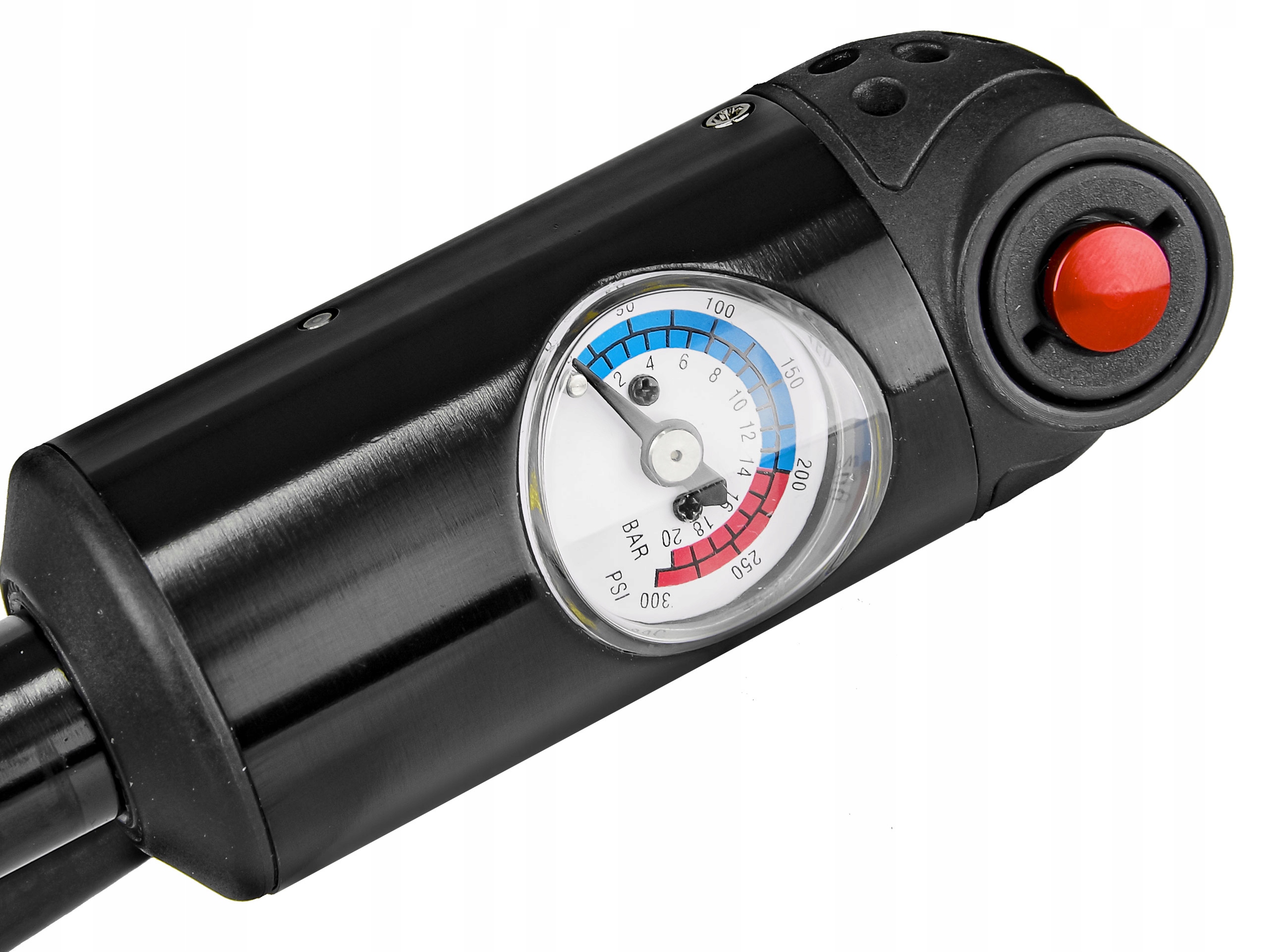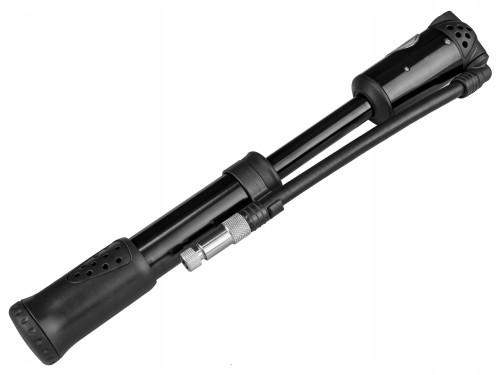 Dwufunkcyjna pompka do amortyzatorów i opon. Obsługuje wszystkie rodzaje wentyli: AV (samochodowy), FV (presta) i DV (rowerowy - klasyczny).