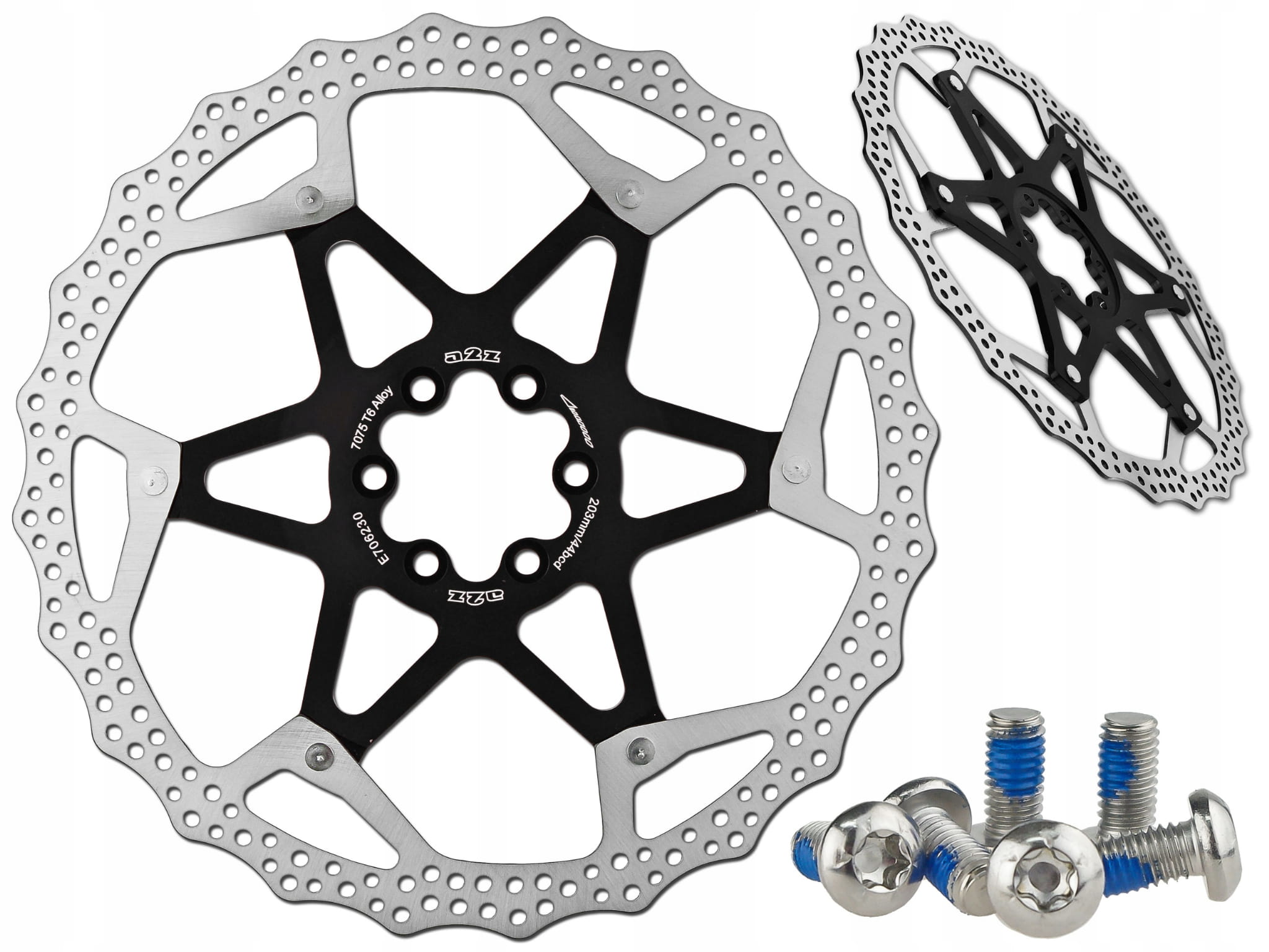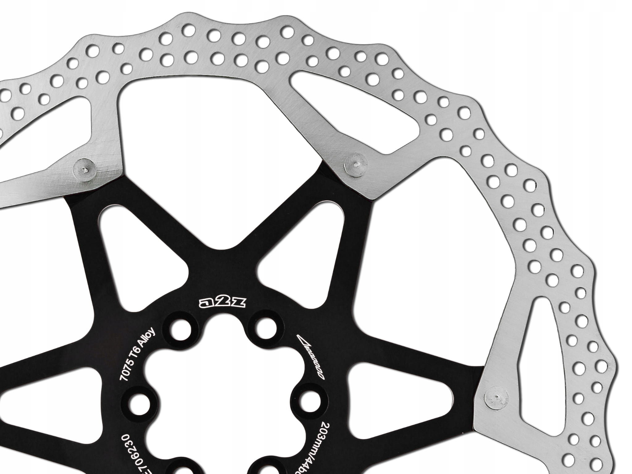 Tarcza hamulcowa A2Z o średnicy 203 mm, wykonana z wysoko węglowej stali na aluminiowym pająku.
