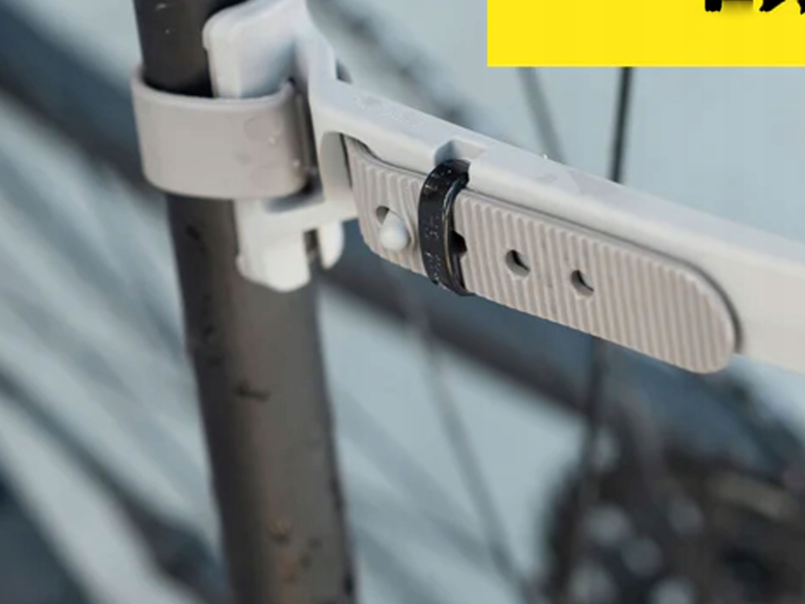 - Paski montażowe, wykonane z bardzo wytrzymałego TPU powinny być stosunkowo mocno zaciśnięte. Jeśli zauważysz, że błotnik nie jest stabilny, spróbuj wykorzystać kolejny otwór w pasku.