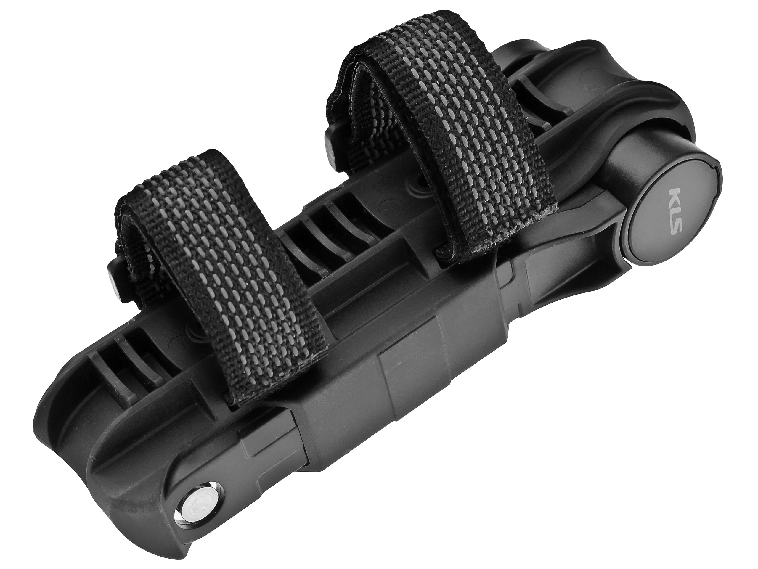 Plastikowy uchwyt pozwala na montaż blokady w dowolnym miejscu na ramie lub sztycy. Przypinany za pomocą rzepów pokrytych stabilizującą gumą. Dodatkowo możliwość przykręcenia mocowania do otworów w ramie.