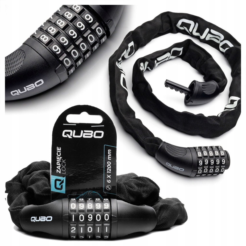 ZAPIĘCIE ZABEZPIECZENIE ROWEROWE ŁAŃCUCH NA SZYFR KOD QUBO 6x1200 mm