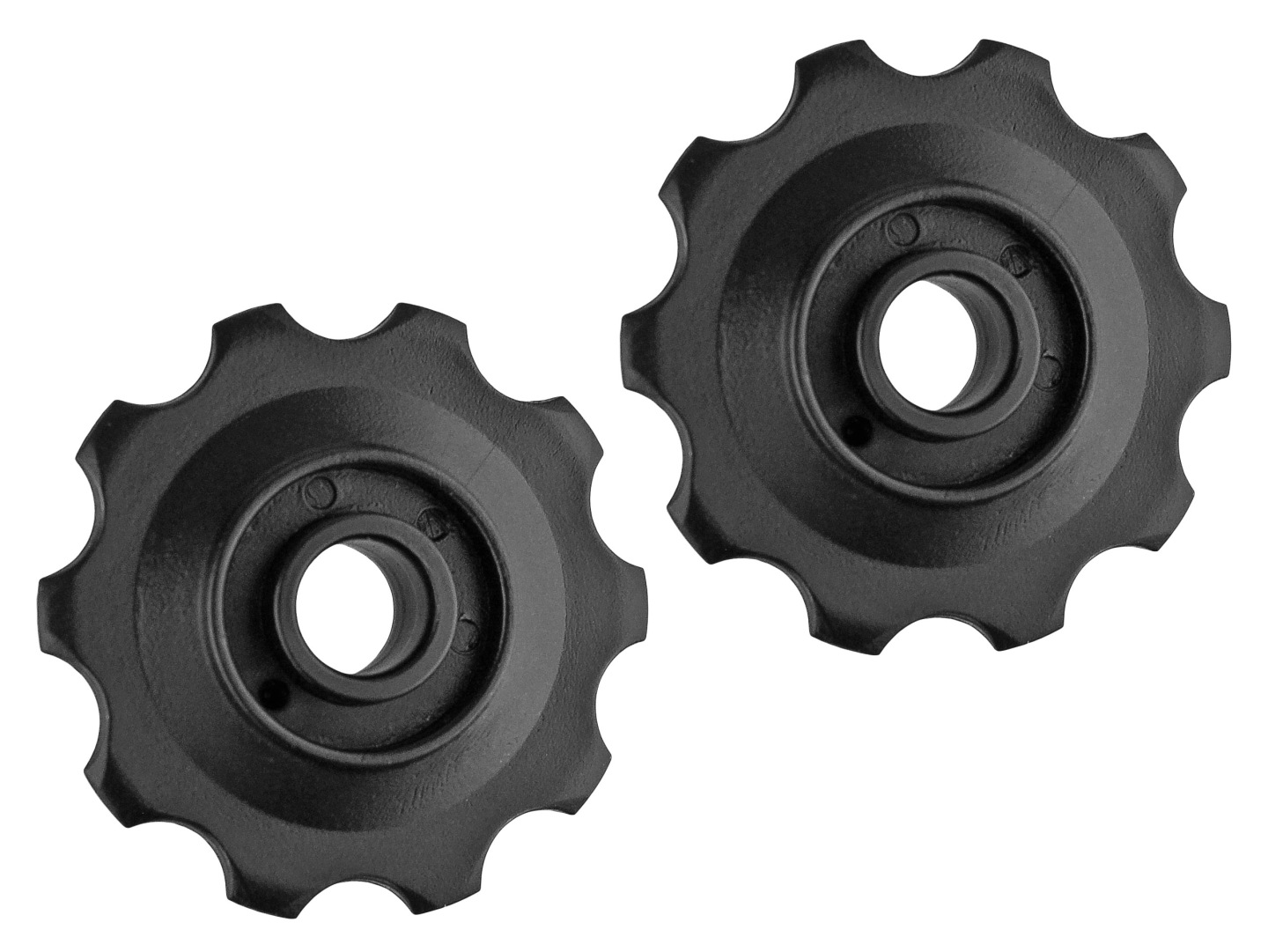 Komplet kółek przerzutki - górne prowadzące i dolne napinające. Dedykowane do przerzutek 5,6 i 7-rzędowych, w których wykorzystywane są kółka 10-zębowe.